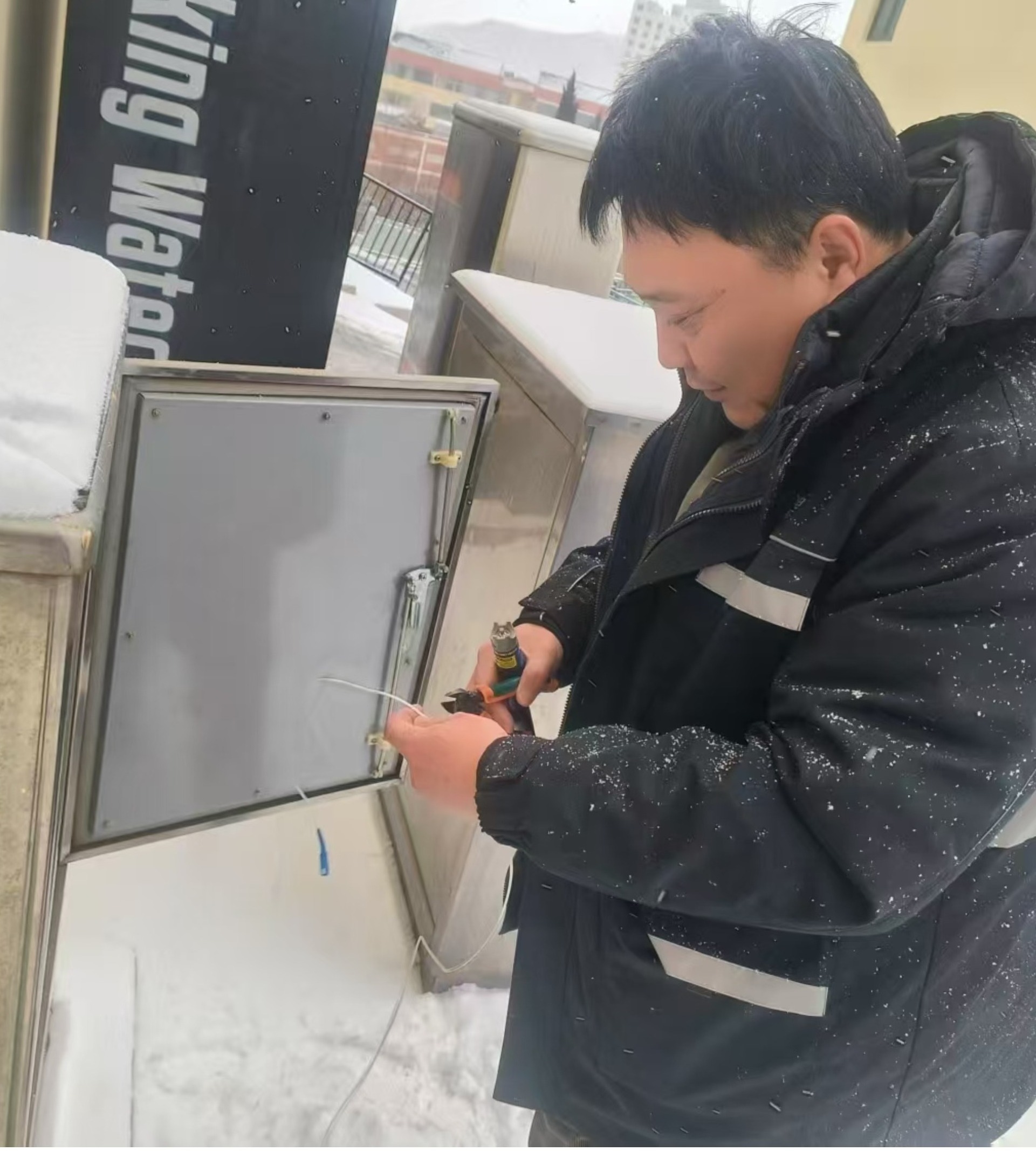 寒潮來襲,日照莒縣分公司始終堅持客戶至上的服務(wù)理念,客戶經(jīng)理接到報修電話,第一時間趕到現(xiàn)場,進(jìn)行故障排查、信號恢復(fù),保障客戶收視與上網(wǎng)體驗。圖為莒縣分公司直屬營業(yè)部客戶經(jīng)理王寶昊在桃園北區(qū)處理信號故障。